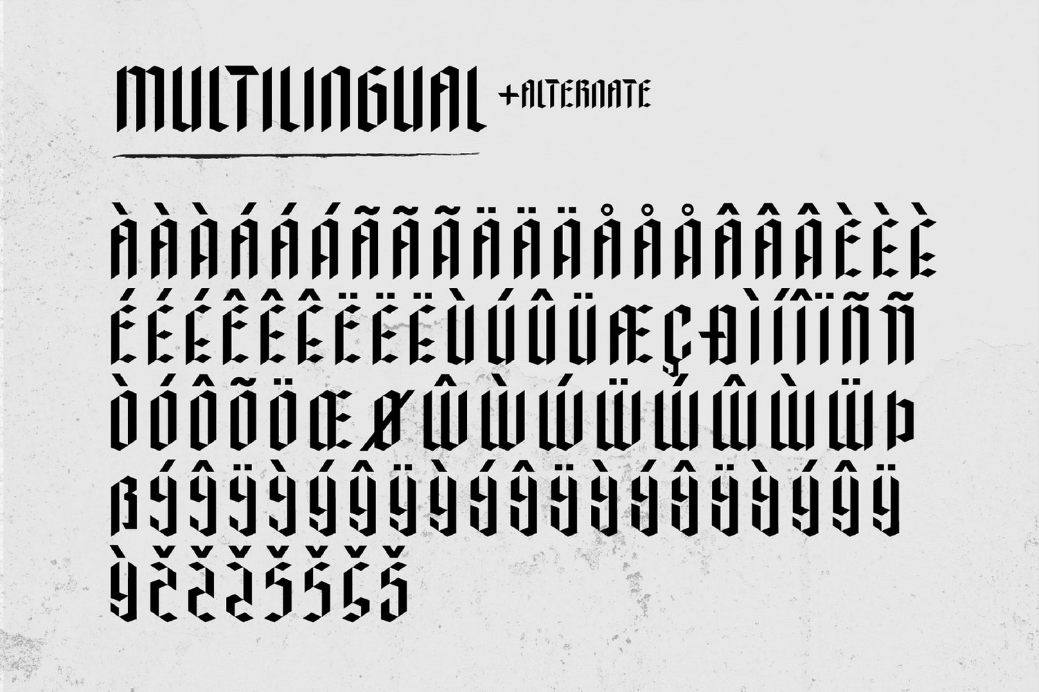 ABKAD is a display font with a gothic style made with a more modern touch, perfect for your design projects such as merchandise, posters, book headlines, logos, etc. ABKAD is equipped with uppercase, numbers, punctuation, multilingual and unique alternate