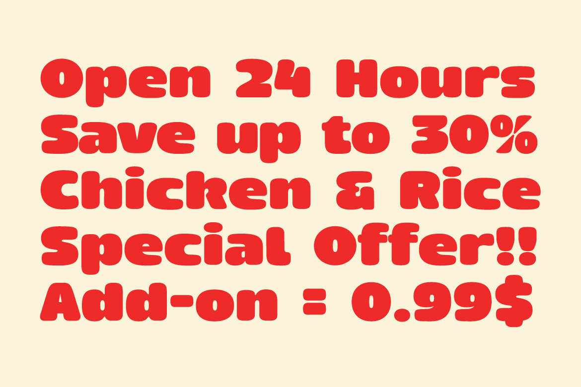 Add a bold flavor to every design with Eatvetica – Bold Food Font, a typeface crafted specifically for the culinary world and food-themed designs. With its strong and well-proportioned letterforms, Eatvetica delivers a powerful yet friendly look, making it the perfect choice for restaurant menus, food packaging, café branding, and promotional posters.