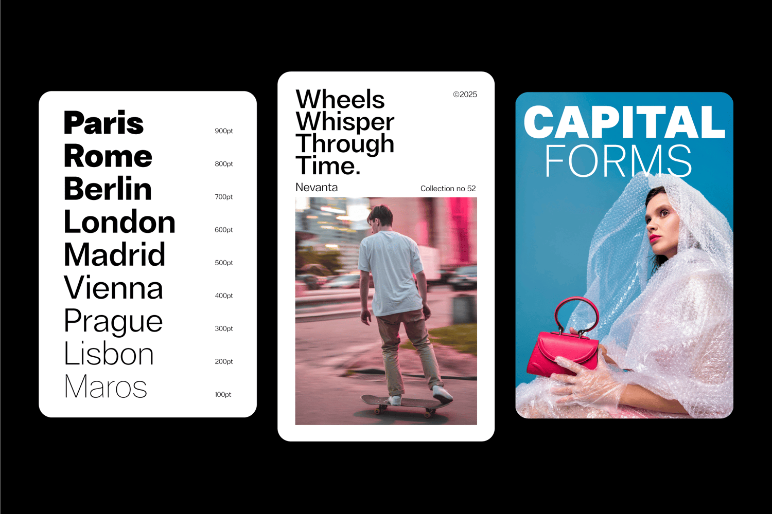 Nevanta is a modern sans serif font with 18 styles (9 weights + Oblique), designed for professional, clean, and versatile typography. With precise geometric proportions and excellent readability, it is ideal for branding, websites, editorials, posters, and corporate identity. Multilingual support ensures flexibility, making it a complete typeface solution for both creative and professional projects.