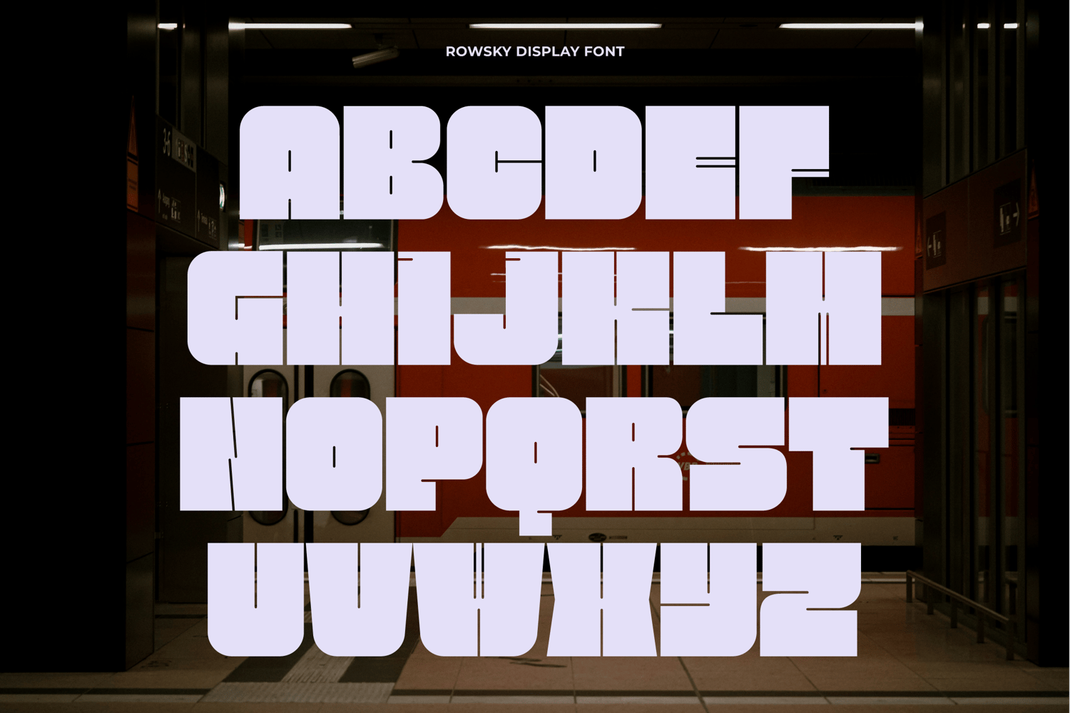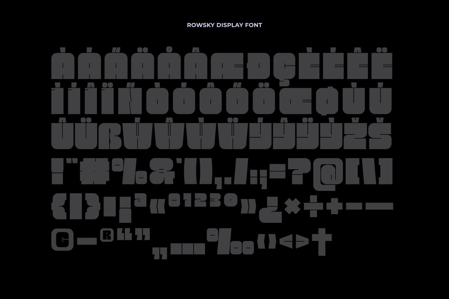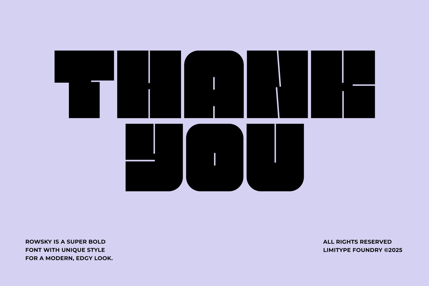 Rowsky is a super bold font with sturdy, blocky shapes full of character. Its unique style details bring a modern, edgy feel that sets it apart from typical bold fonts. Perfect for headlines, posters, logos, and visual identities that aim to appear strong, confident, and memorable.